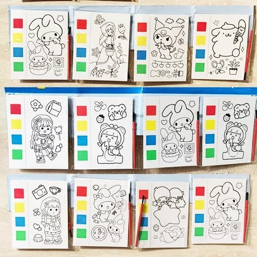 - 2 صفحه رنگ آمیزی به همراه گواش و قلمو